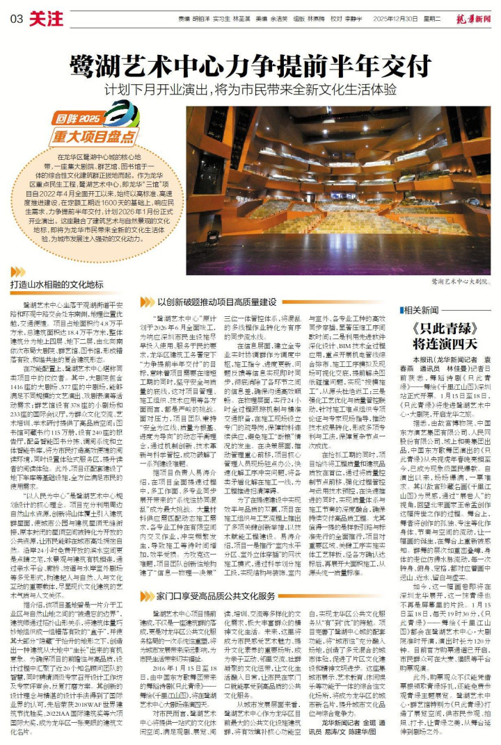 鹭湖艺术中心项目提前建成,不仅是一座建筑群的落成,更是对龙华区公共文化服务格局的一次系统性重塑,将为城市发展带来深远影响,为市民生活带来切实福祉。